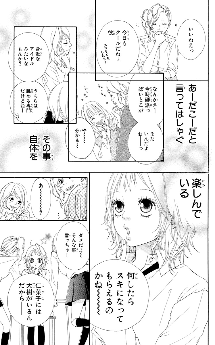仁菜子は素直でおっとりした高校生。まだ恋はしたことないと思っている。自分に想いをよせる大樹への気持ちが恋だといわれて、いいヤツだとは思ってるけど…? ある帰り道電車で学校で人気の男子・蓮と出会う。少しの会話や笑顔だけで仁菜子は新しい気持ちを感じる。この気持ちはいったい…!? 仁菜子のほんとの初恋が始まる!